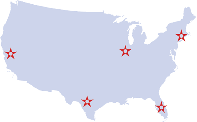 - Locations from coast to coast (MA, FL, TX, CA)